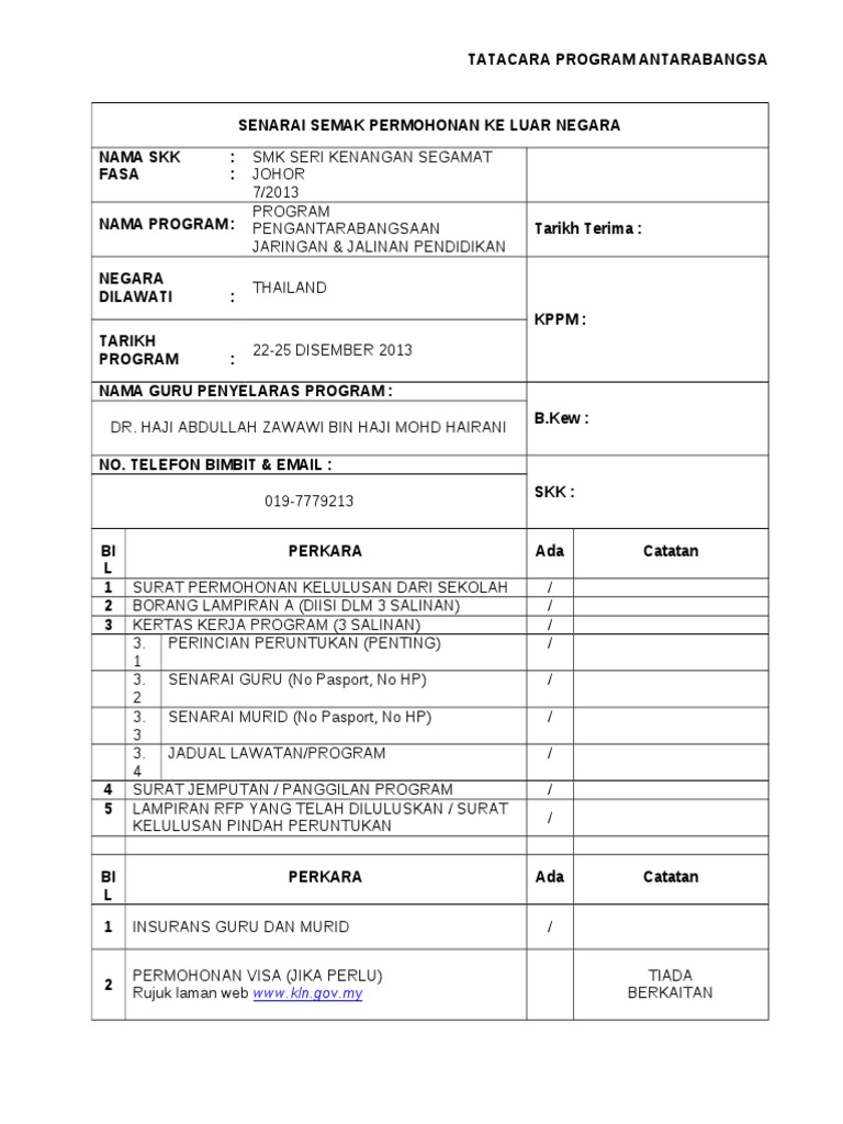 Senarai Semak Permohonan Ke Luar Negara / (ruangan c1) senarai nama bank panel kwsp bagi bayaran pengkreditan terus ke akaun ahli sila pilih salah satu sahaja nama bank daripada senarai bank panel kwsp yang menyediakan.. D) pastikan ppn telah membuat pengesahan dengan bukti tandatangan, tarikh dan cop rasmi pada borang permohonan. Senarai semak pakaian ke temuduga (lelaki) video minggu ini berfokuskan kepada etika pemakaian yang sesuai untuk ke temuduga, khas untuk. Permohonan hanya boleh dimasukkan ke dalam sistem setelah fi yang lengkap diterima. Kenapa tidak boleh ke luar negara? Senarai semak permohonan berkahwin negeri selangor (perempuan) prosedur :